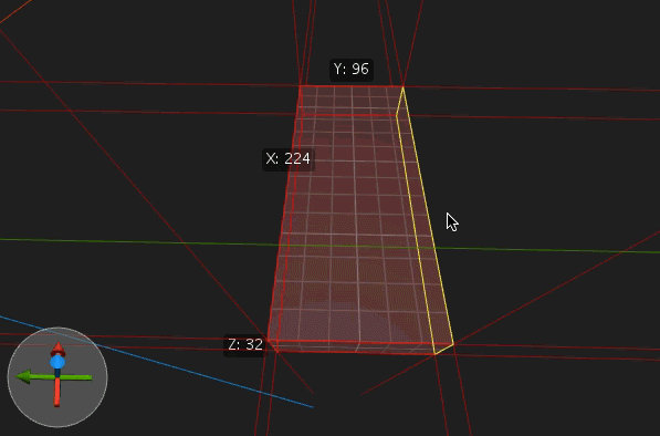 The normal of the plane is in the direction of the cross product of v1 and v2. In the diagram above, the plane normal points towards you. Together with its normal, the plane divides three dimensional space into two half spaces: The upper half space above the plane, and the lower half space below the plane. In this interpretation, the volume of the brush is the intersection of the lower half spaces defined by the face planes. This way of defining brushes has the advantage that all brushes are automatically convex. However, this representation of brushes does not directly contain any other geometric information of the brush, particularly its vertices, edges, and facets, which must be computed from the plane representation. In TrenchBroom, the vertices, edges, and facets are called the brush geometry. TrenchBroom uses the same method as the BSP compilers to compute the brush geometry. Having the brush geometry is necessary mainly for two things: Rendering and vertex editing.