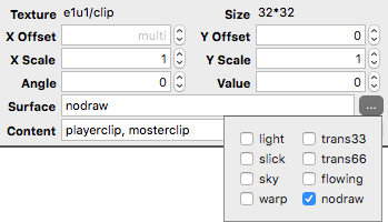 surfaceflag Match against face surface flags (used by Quake 2, Quake 3)