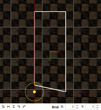 The editing area is divided in two sections: The context sensitive info bar at the top and the viewports below. The info bar contains different controls depending on which tool is currently activated. You can switch between tools such as the rotate tool and the vertex tool using the toolbar buttons, the menu or with the respective keyboard shortcuts. The context sensitive controls allow you to perform certain actions that are relevant to the current tool such as setting the rotation center when in the rotate tool or moving objects by a given delta when in the default move tool. Additonally, there is a button labeled “View” on the right of the info bar. Clicking on this button unfolds a dropdown containing controls to filter out certain objects in the viewports or to change how the viewport renders its contents.
