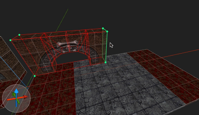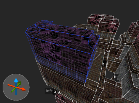 The editing area is divided in two sections: The context sensitive info bar at the top and the viewports below. The info bar contains different controls depending on which tool is currently activated. You can switch between tools such as the rotate tool and the vertex tool using the toolbar buttons, the menu or with the respective keyboard shortcuts. The context sensitive controls allow you to perform certain actions that are relevant to the current tool such as setting the rotation center when in the rotate tool or moving objects by a given delta when in the default move tool. Additonally, there is a button labeled “View” on the right of the info bar. Clicking on this button unfolds a dropdown containing controls to filter out certain objects in the viewports or to change how the viewport renders its contents.