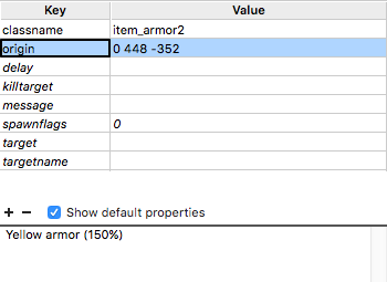 Thereby, the format key is mandatory but the initialmap key is optional. The initialmap key refers to a map file in the game’s configuration sub folder which should be loaded if a new document is created. If no initial map is specified, or if the file cannot be found, TrenchBroom will create a map containing a single brush at the origin.